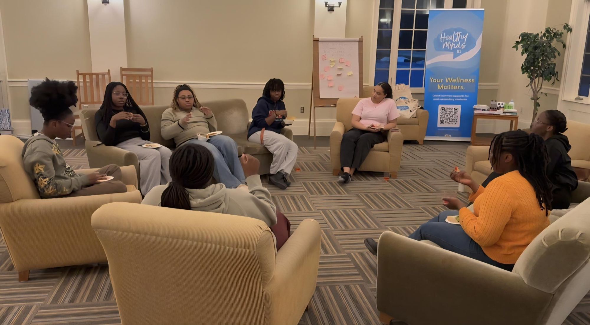 When the day’s done, everyone needs a space to rest. For the Black women at Acadia, that place was an intimate circle in Clarke Commons on February 26th. Here, we got a chance to step away from the bustle of university life and practice care together.