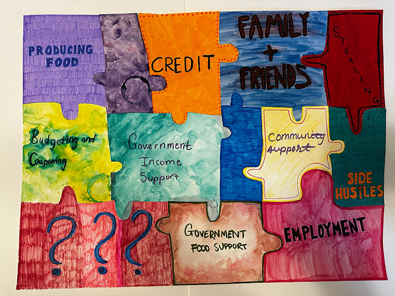Nick Lundrigan, an Honours student in English and women’s and gender studies, joined the project as it moved into building its visual components. Their work centred on shaping participant videos into concise, powerful narrative pieces. Nick recalls how emotionally challenging it was to handle such vulnerable footage. “Seeing parents document their days — the panic when the shelf was empty, the joy when a friend dropped off a can — it showed how high the stakes were,” they explain.