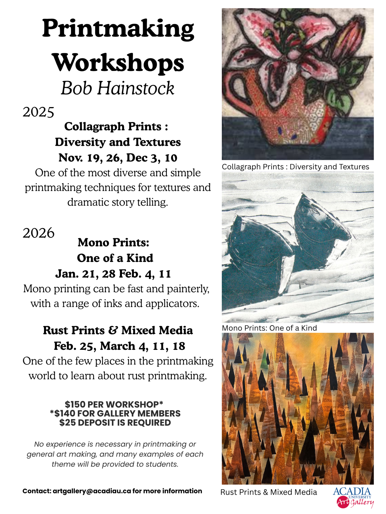 Location: Acadia University Art Gallery Lab Room 131