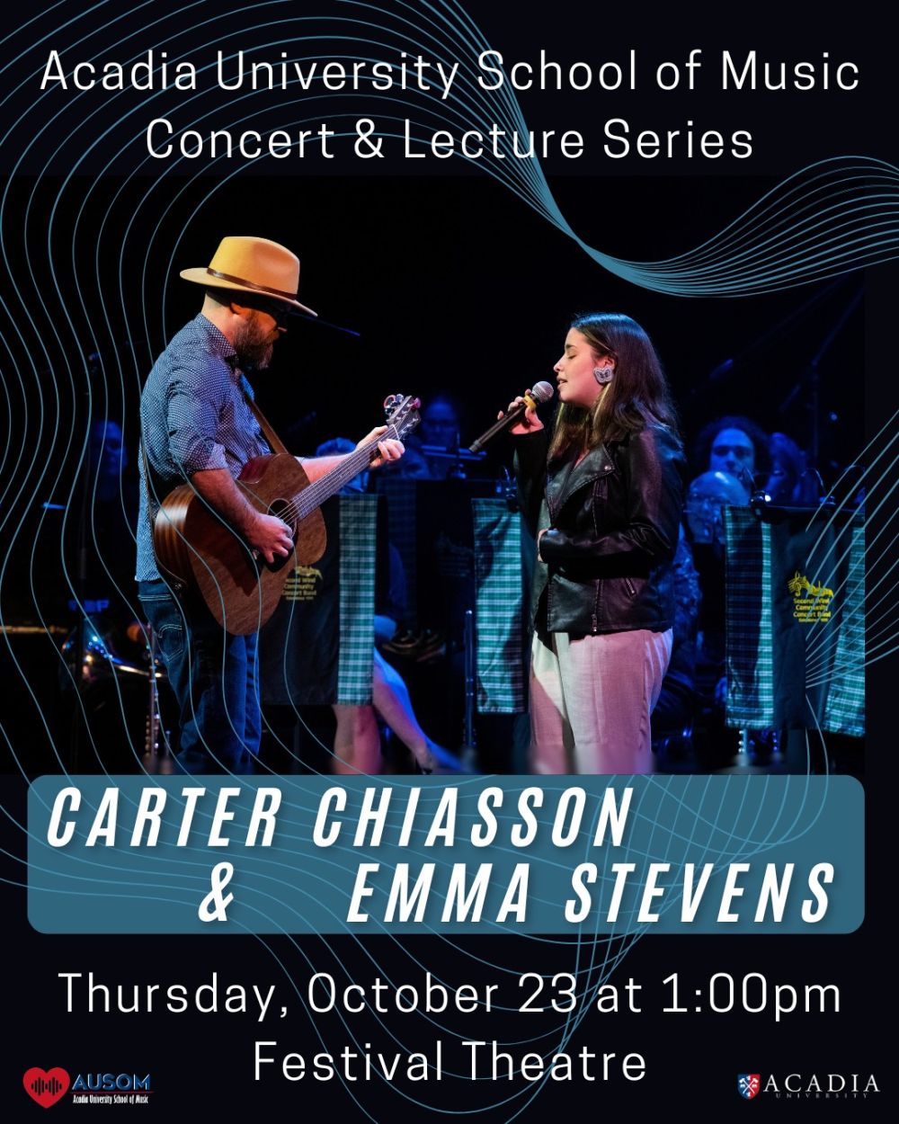 On Thursday, October 23, the Acadia School of Music Concert & Lecture Series presents a performance and talk by Emma Stevens & Carter Chiasson.