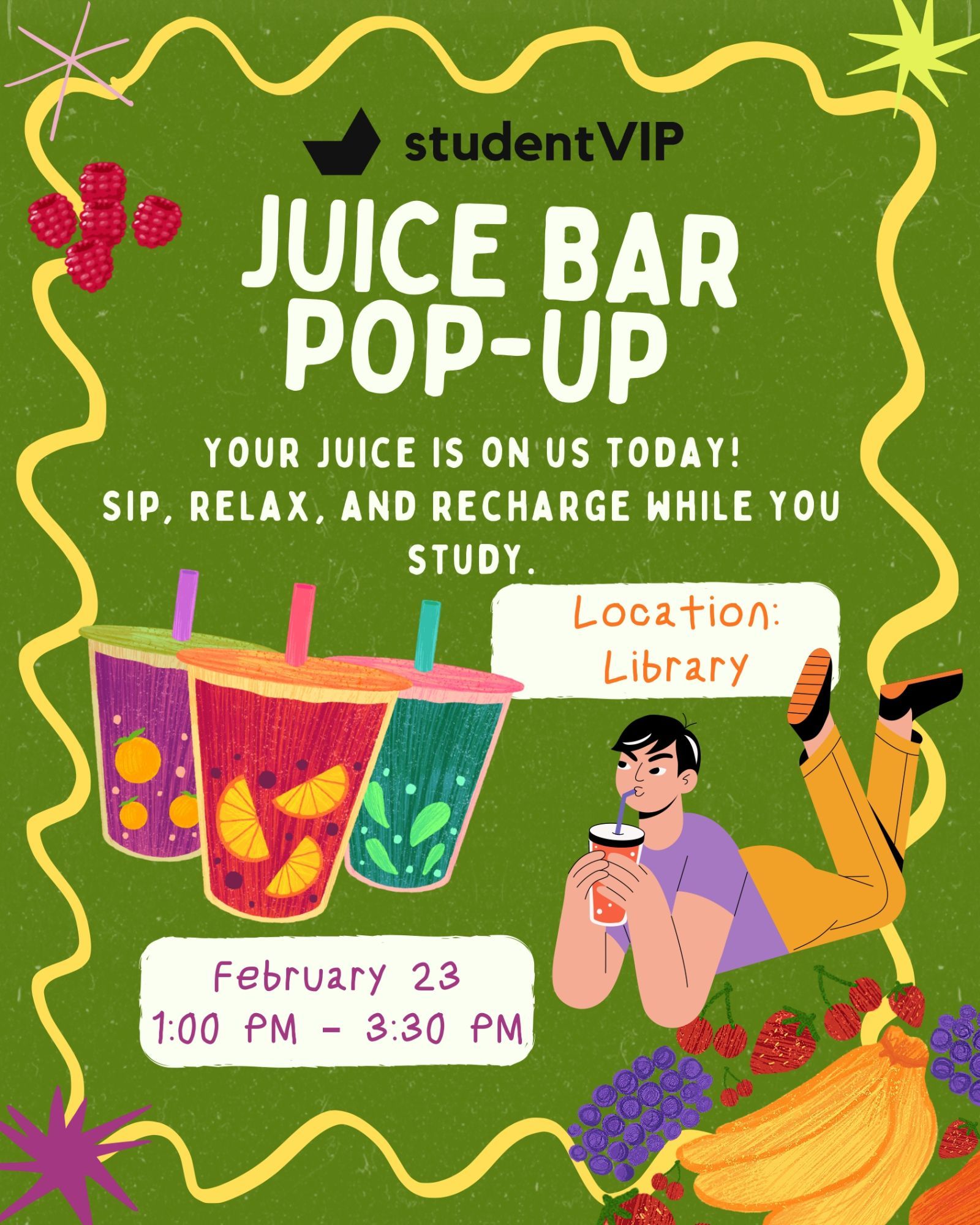 Come to enjoy a Juice Mocktail at the Library for FREE on Monday Feb, 23 from 1:00 to 3:30