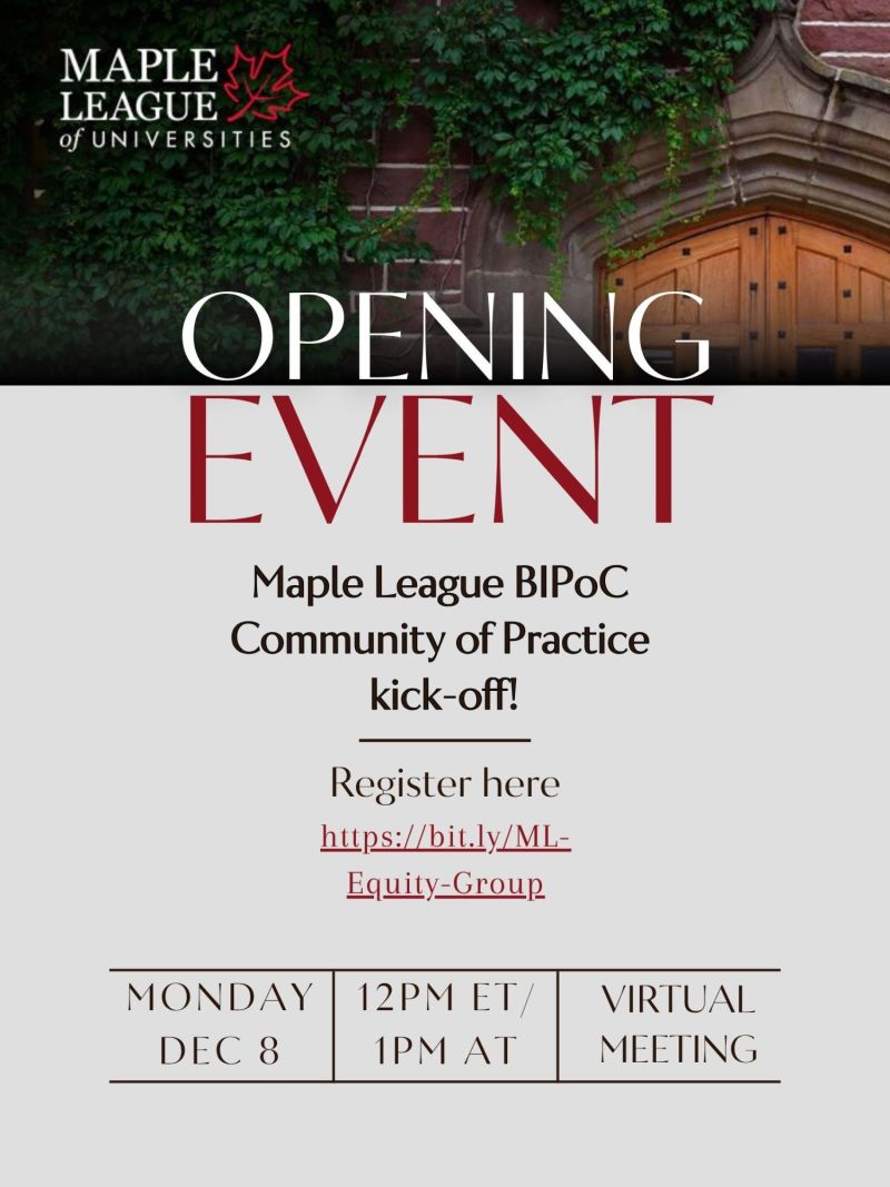 Maple League of Universities BIPoC community of practice - Let's meet!