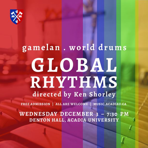 Join Acadia School of Music instructor Ken Shorley's World Drumming and Intro to Gamelan classes for their end-of-term performance presentation!