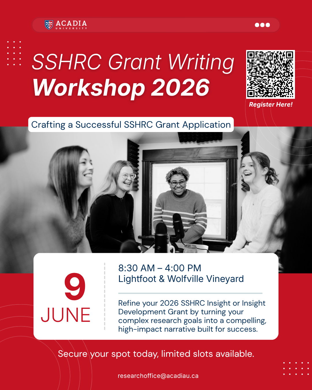 We invite you to join the Office of Research and Innovation along with your fellow faculty colleagues in a grant writing workshop as you develop your Tri-Agency SSHRC research grant proposals.