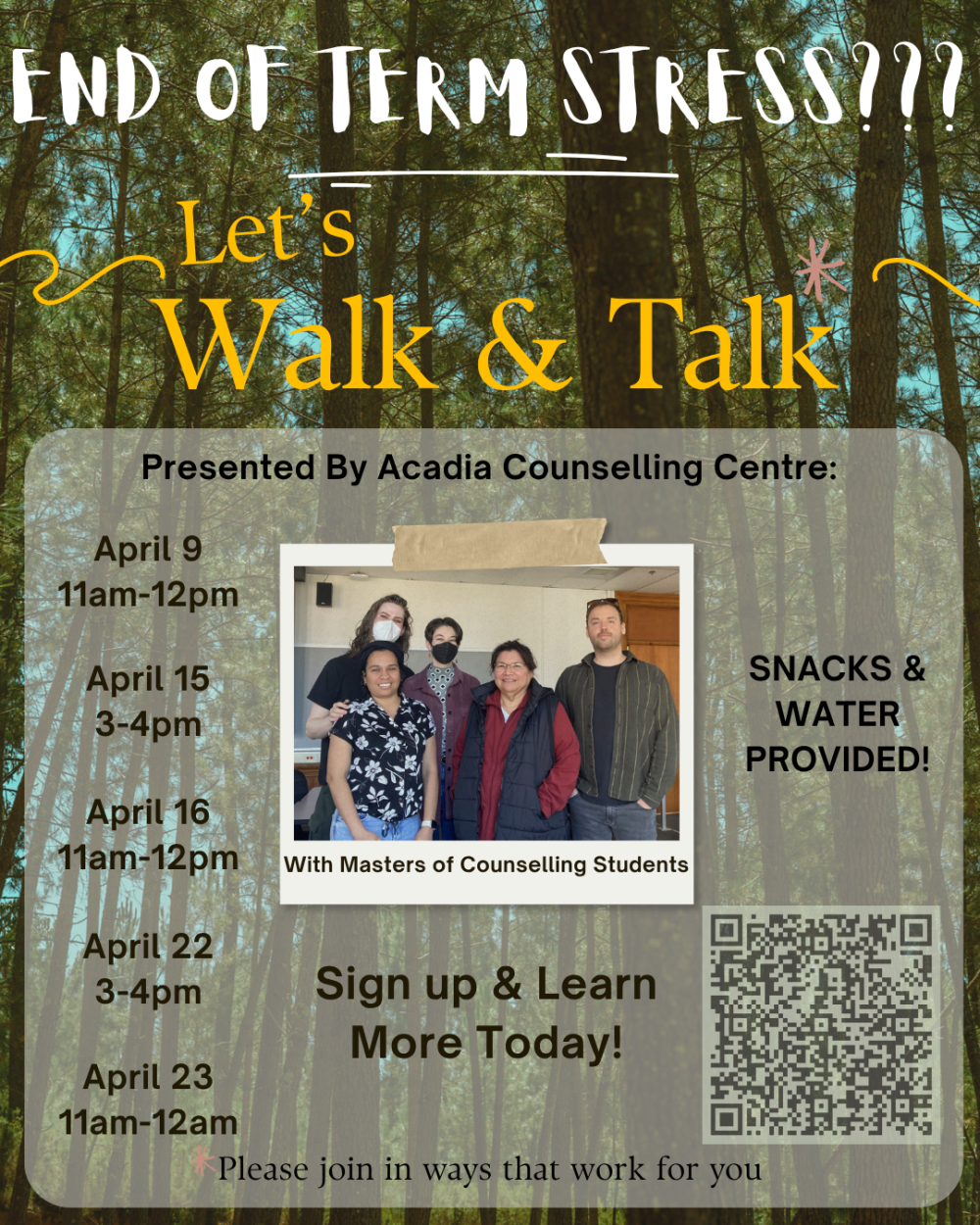 This event is presented by the Acadia Counselling Center in partnership with the following 5 students from Acadia's Masters of Counselling program: