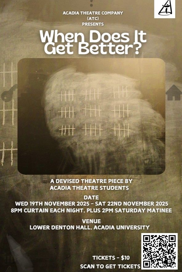 In a time when media superpowers and the social internet profit from fear and division, When Does it Get Better (a piece collectively created by theatre students from first year to fourth year – and beyond) grapples with despair and searches for hope. It explores themes of death, loss, self-harm, abortion, disability, and chronic illness with honesty, vulnerability, and humour.