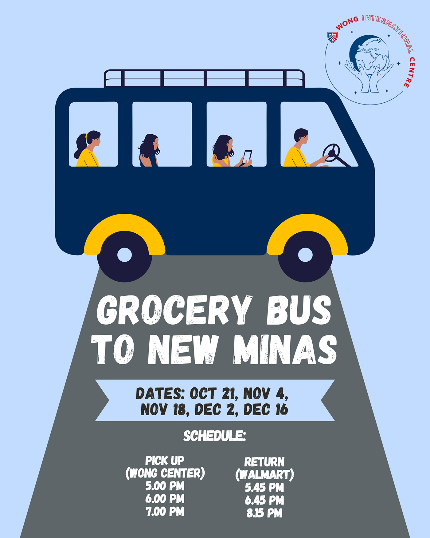 Need a Walmart run? Hop on our free shuttle from the Wong International Centre to New Minas every other week!