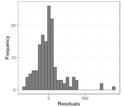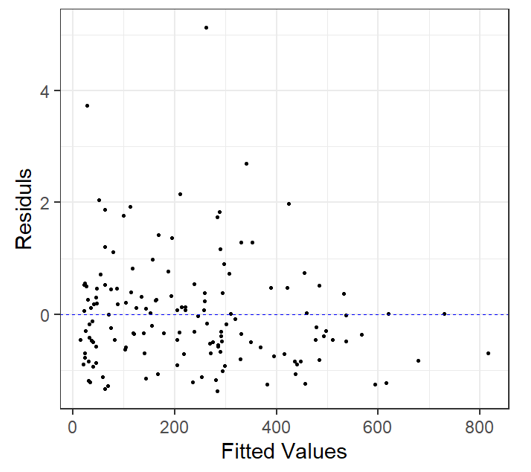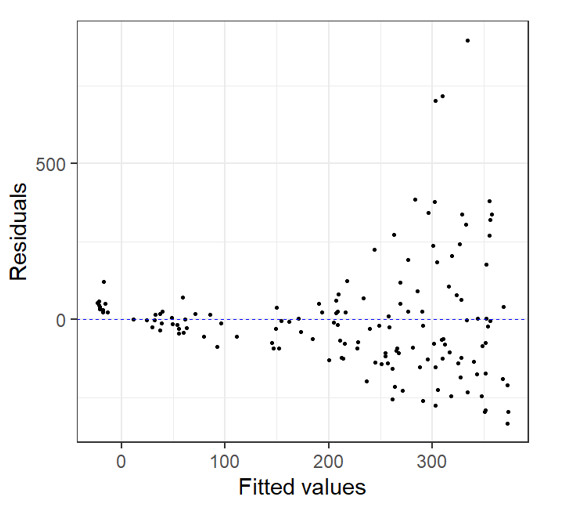 - Residuals were heterogeneous and showed patterns,