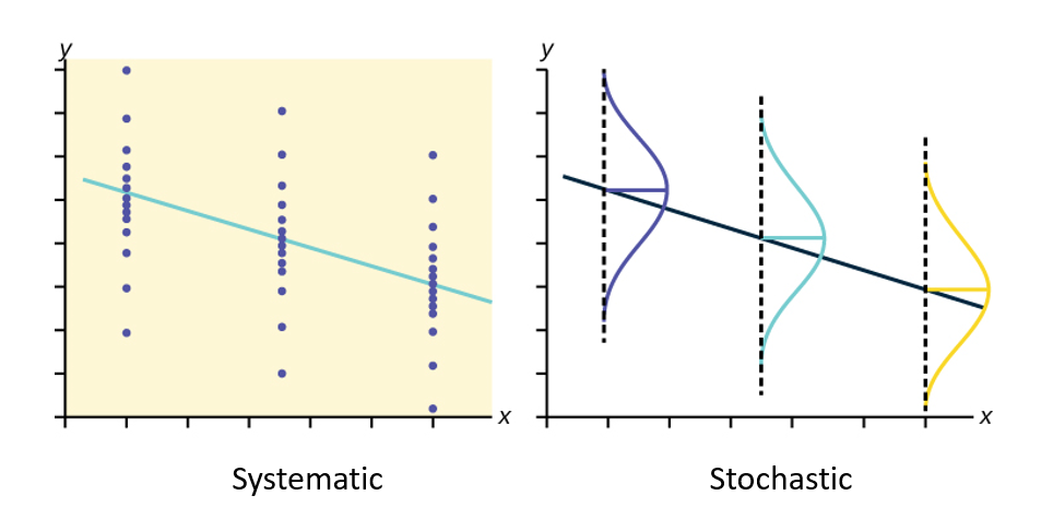 - A Stochaistic component: variability due to other causes, which we can not explain with our data