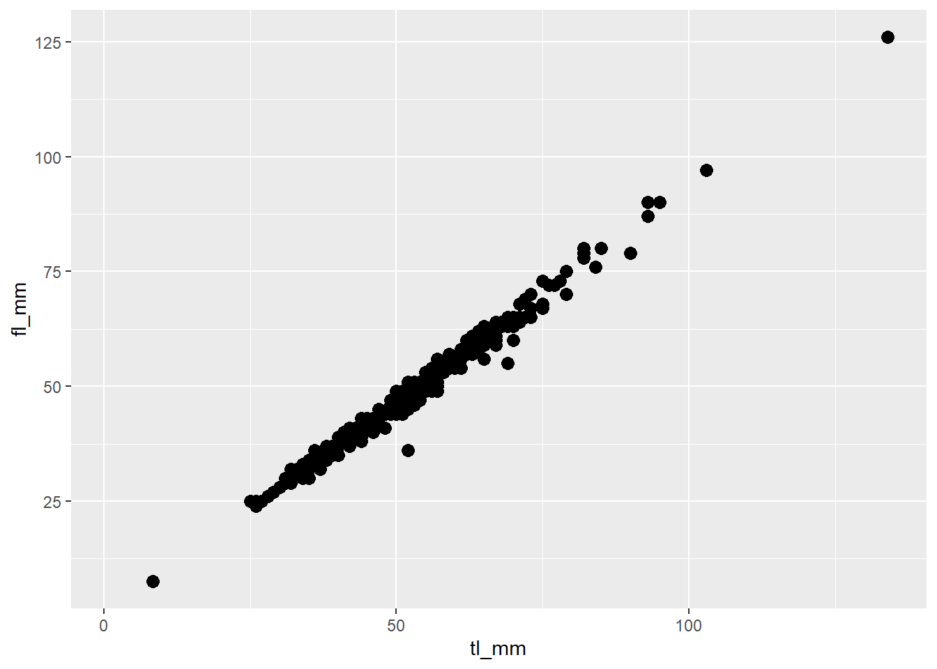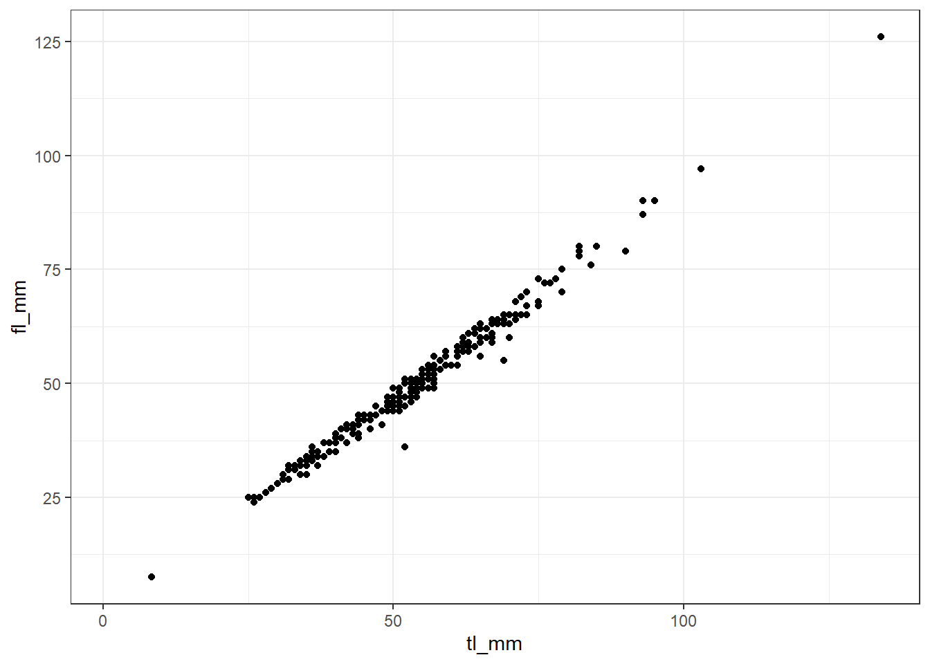 geom_point(mapping = aes(x = fl_mm, y = tl_mm),